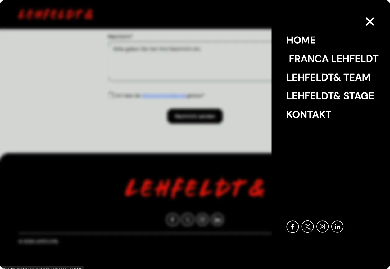 Die alte Webseite von Franca Lehfeldt war spürbar veraltet und basierte auf einem Drupal System. Die Wartung fiel schwer, die Designflexiblität war eingeschränkt. Aus diesen Gründen entschied sich das Team von LEHFELDT& die Website gemeinsam mit mir auf Webflow zu migrieren und in dem Zuge einen Retouch des vorhandenen Brandings durchzuführen.