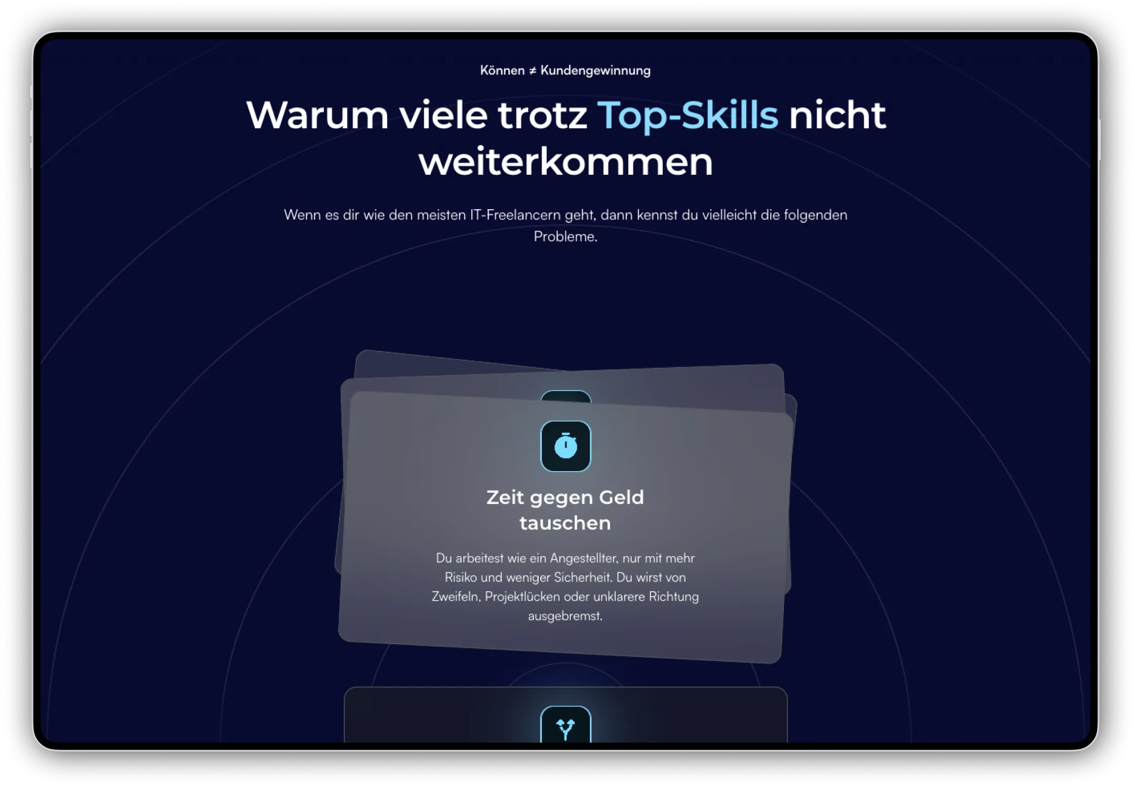 Die größte Herausforderung war die Diskrepanz zwischen der Qualität des Angebots und dem digitalen Auftritt: Die vorherige Website war technisch veraltet, konvertierte schlecht, besaß kein High-End-Branding und litt unter einer unklaren Struktur. Das Markenbild entsprach nicht dem Anspruch, IT-Freelancer in die oberste Liga der gefragten Experten zu führen. Es fehlte ein visueller Auftritt, der die Zielgruppe der IT-Freelancer Forge direkt anspricht und konvertiert.